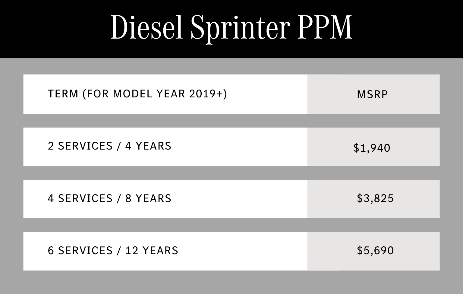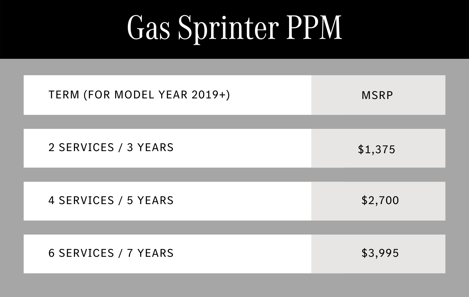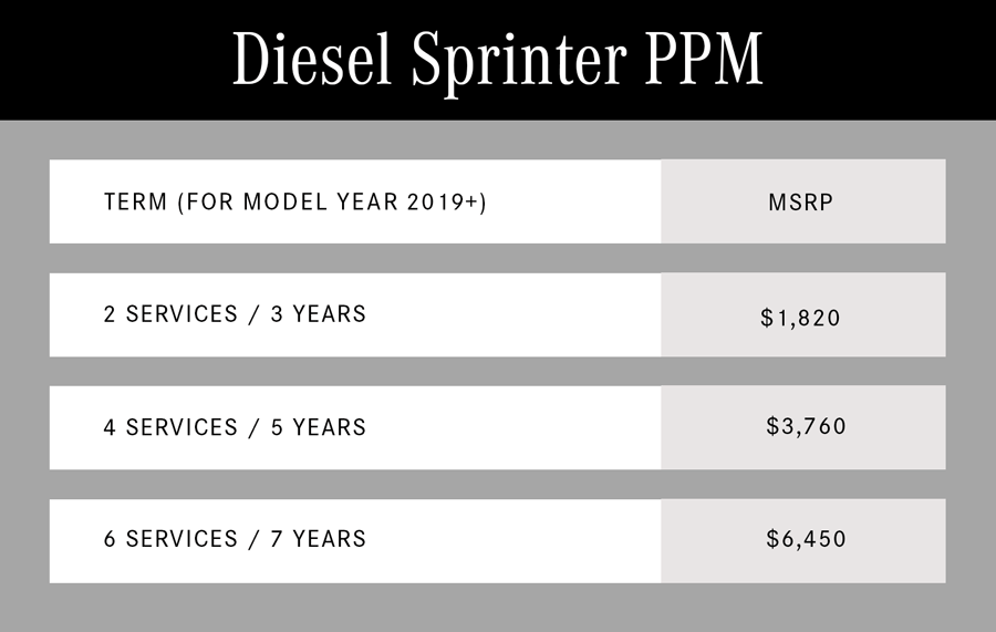 A smart decision now can mean no surprises later. By covering two, four, six, or eight of the services your van requires in advance, you can remain confident knowing your business will run efficiently while you save time and money.